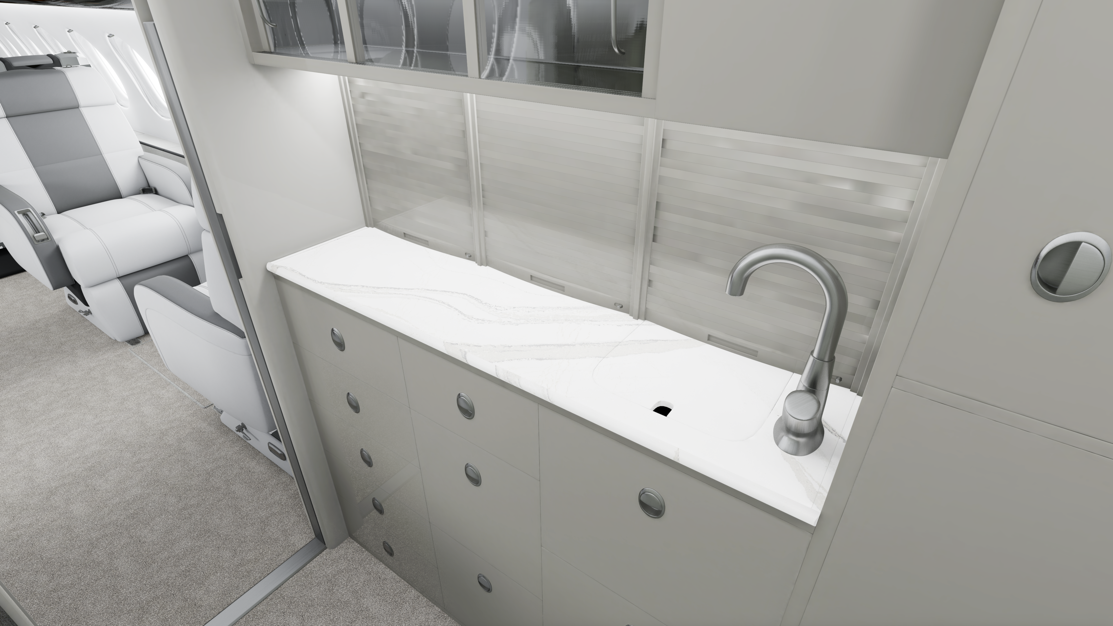 Introducing Cloudstone™ Granite, this premium granite carries a signature of elegance and luxury like no other. Expertly crafted to be both lightweight and functional for aviation use. Cloudstone™ brings unprecedented style and luxury to any project.